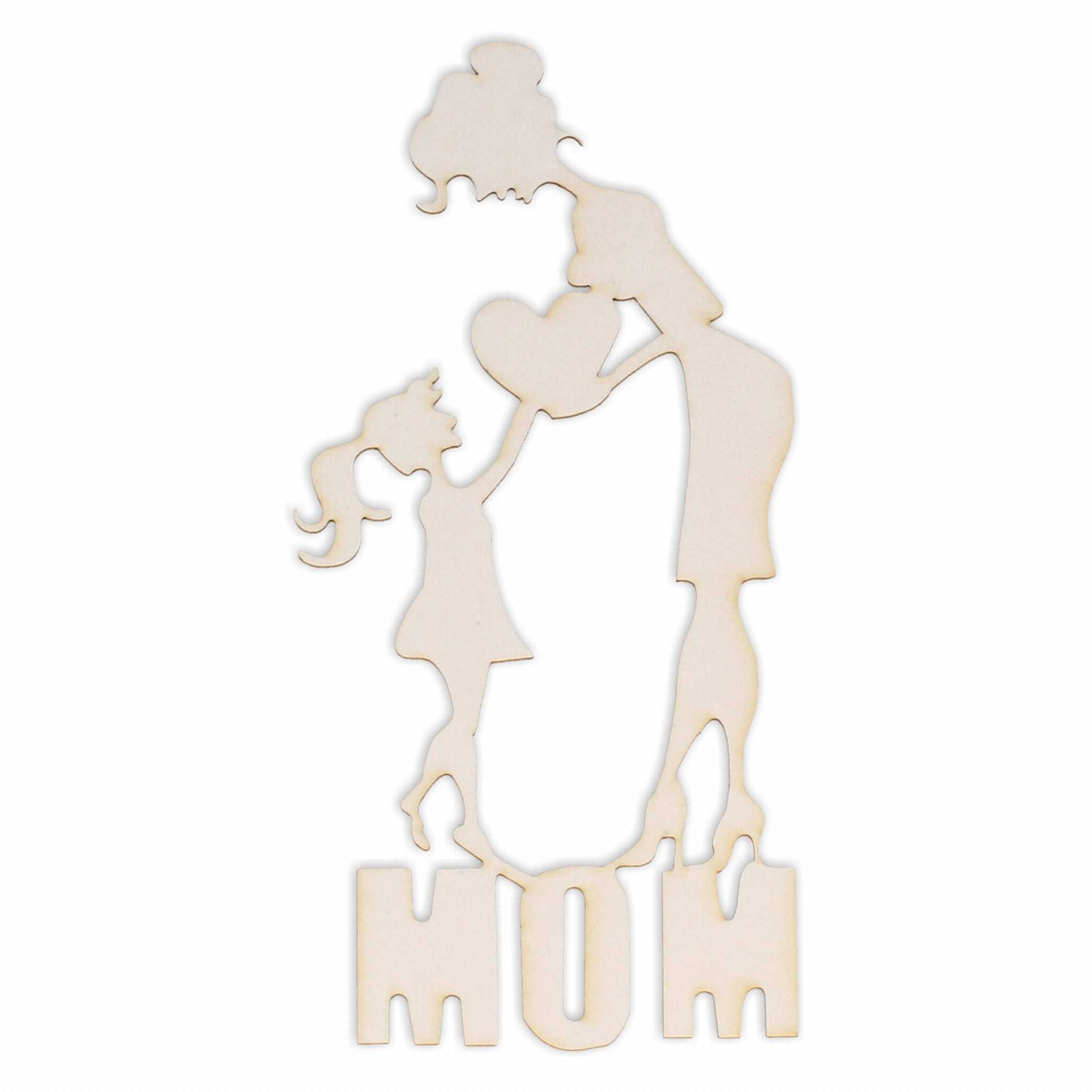 Dekoracja wykonana z kartonu prezentuje mamę z córką, w sytuacji której mama oddaje swoje serce dziecku jako nawiązanie do wyjątkowej, matczynej miłości. Kobieta z córką stoją na napisanie MOM.