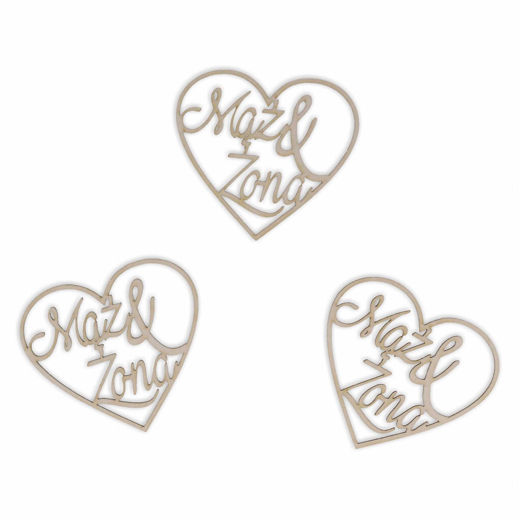 Delikatne ażurowe serduszka z wpisanym "Mąż&Żona" znajdą zastosowanie w przygotowaniu zaproszeń ślubnych, kartek dla nowożeńców, podziękowań. Świetnie wyglądają malowane jak i na surowo.