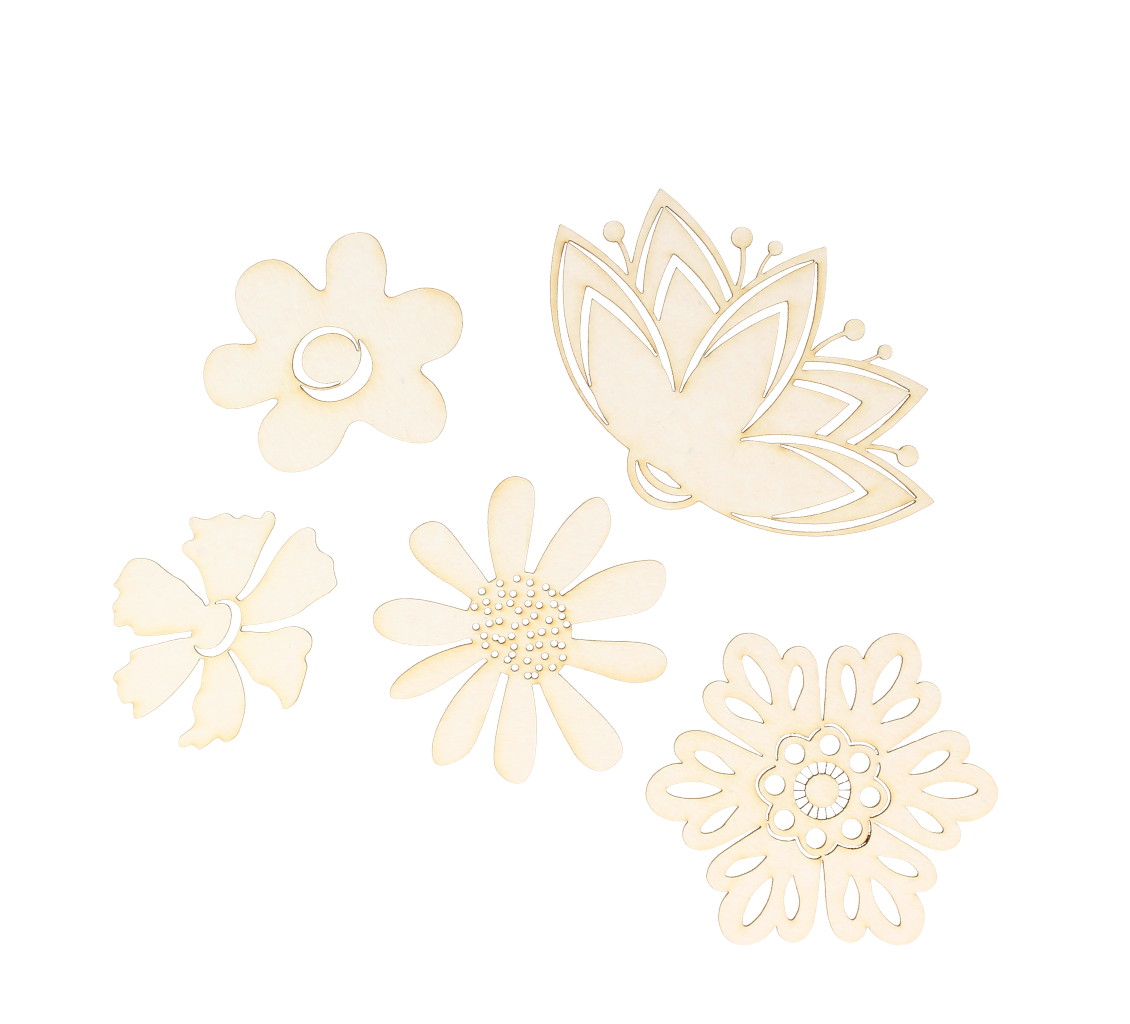 Zestaw pięciu delikatnych wiosennych kwiatów z kartonu.
