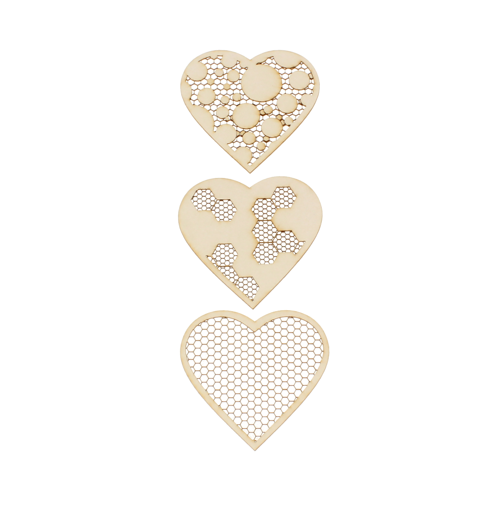 SK1685 Zestaw serc ażurowych we wzorki - 3 sztuki