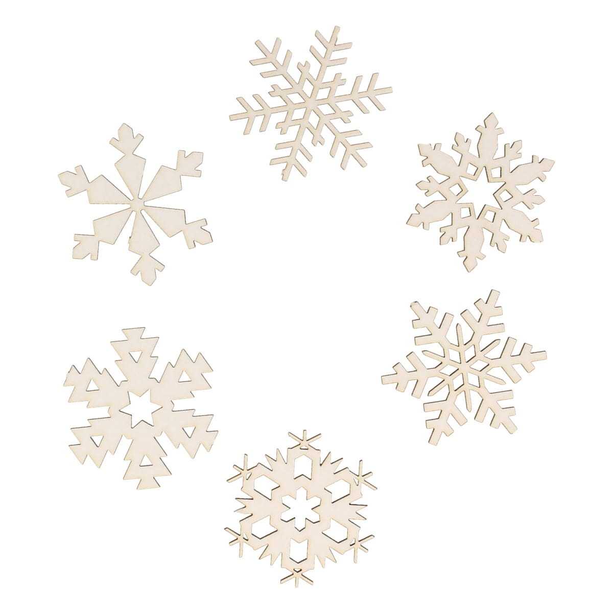 Zestaw kartonowych płatków śniegu do ozdabiania techniką scrapbooking. W zestawie znajduje się 6 różnych płatków.