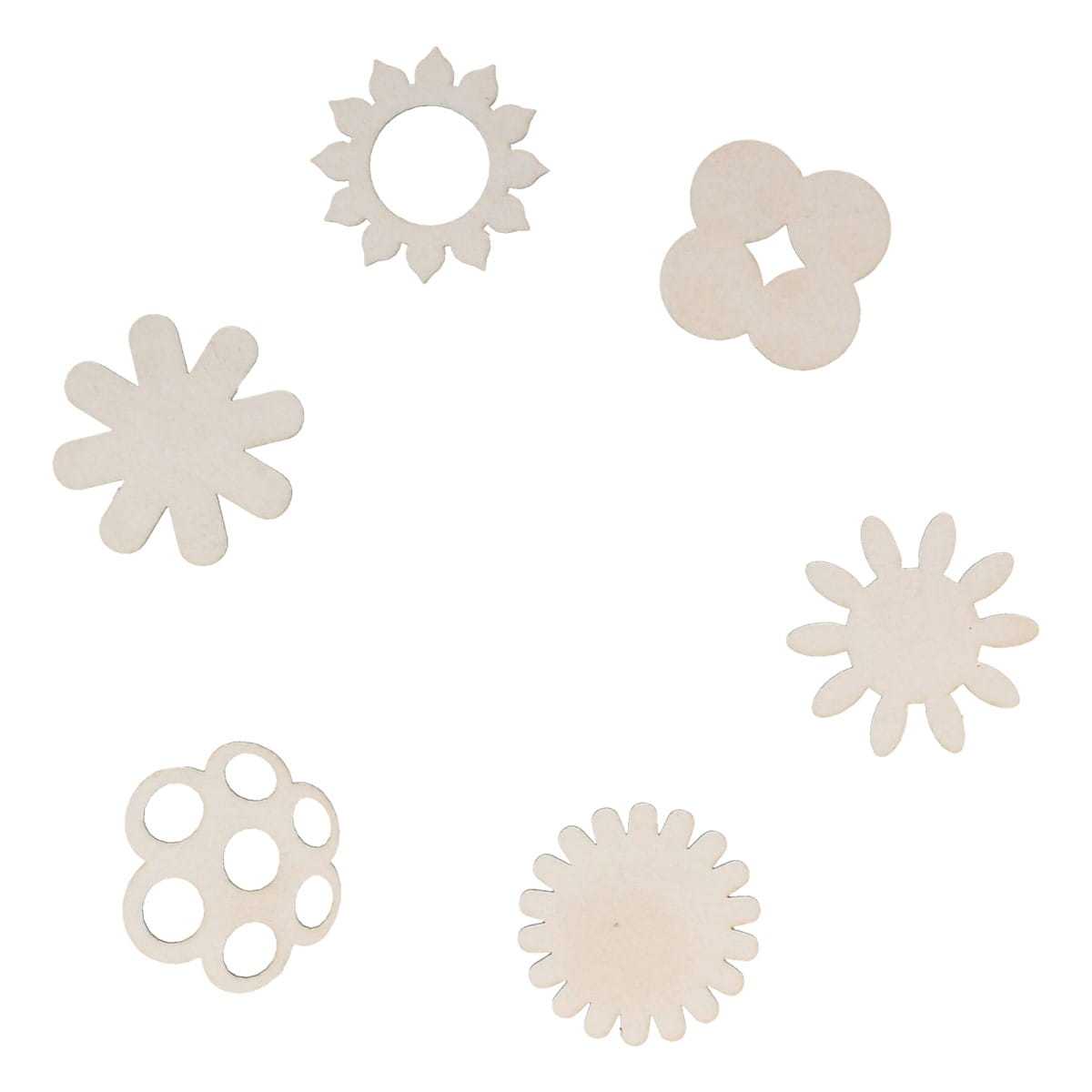 Zestaw kartonowych kwiatków do ozdabiania techniką scrapbooking. W zestawie znajduje się 6 różnych kwiatków.