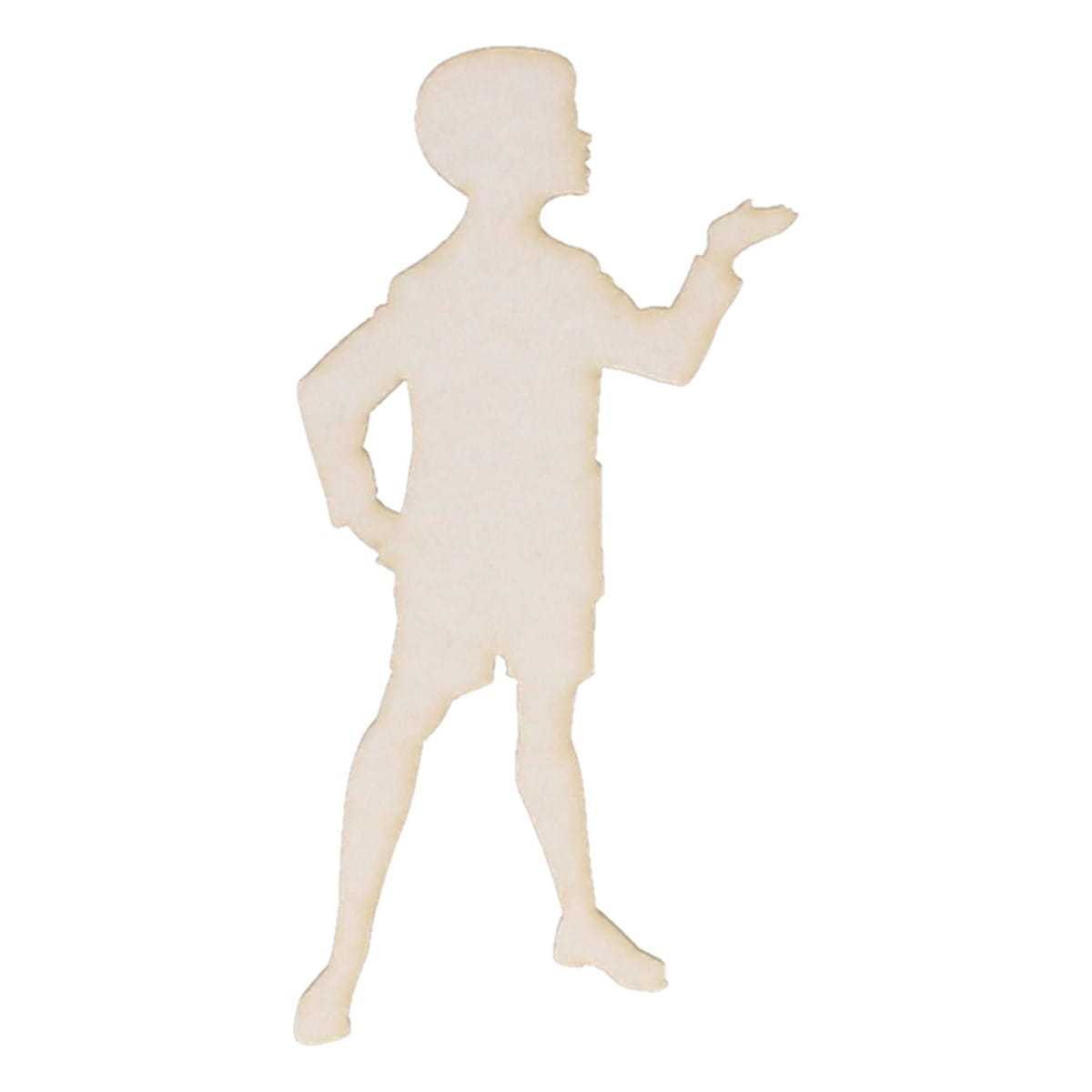 Chłopiec wykonany z białej tektury. Można go malować lub może służyć jako gotowa ozdoba.