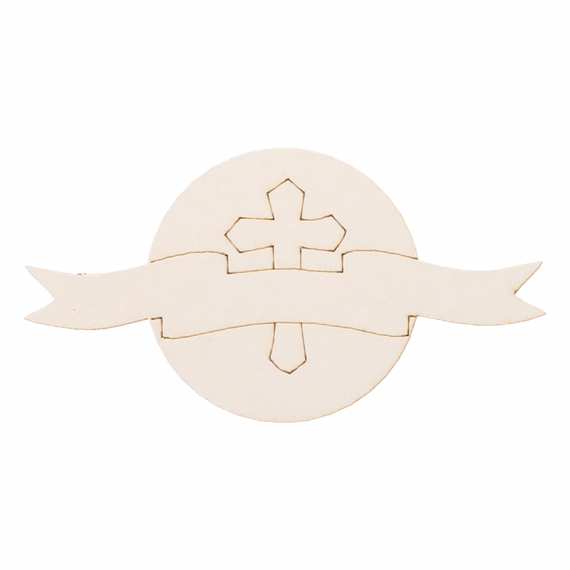 Ozdoba z kartonu opłatek z krzyżem i wstęgą.