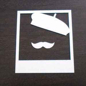 Ramka w stylu Paris z czapka -beretem i wąsem- wykonana z tektury.
