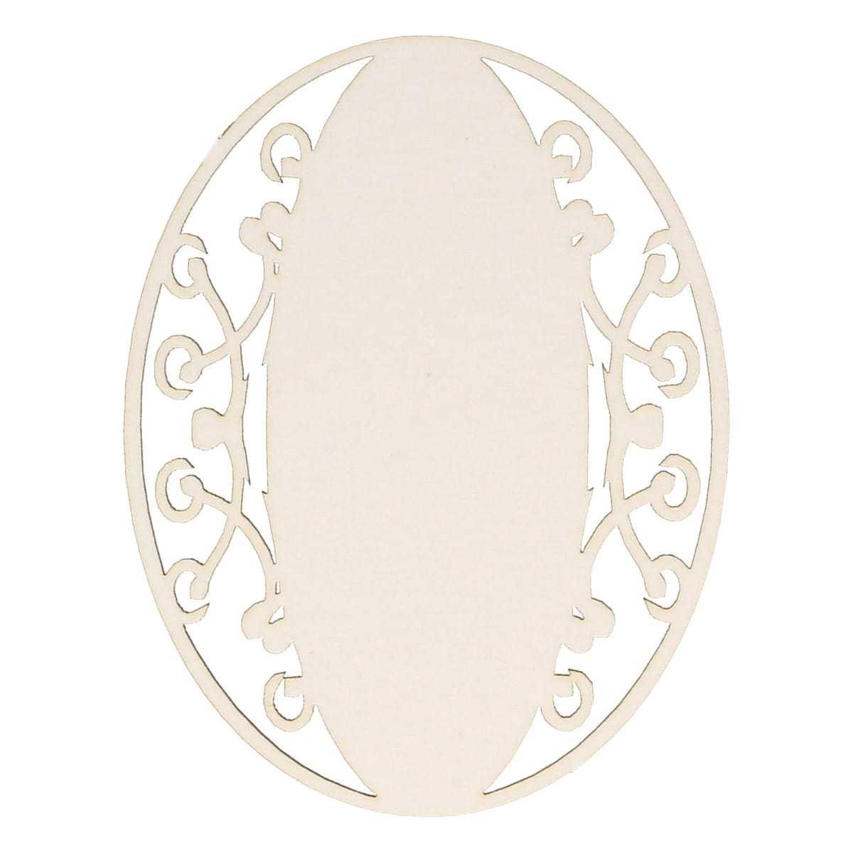 Owalna ramka z elementami dekoracyjnymi dookoła. Ozdoba z tektury.