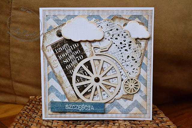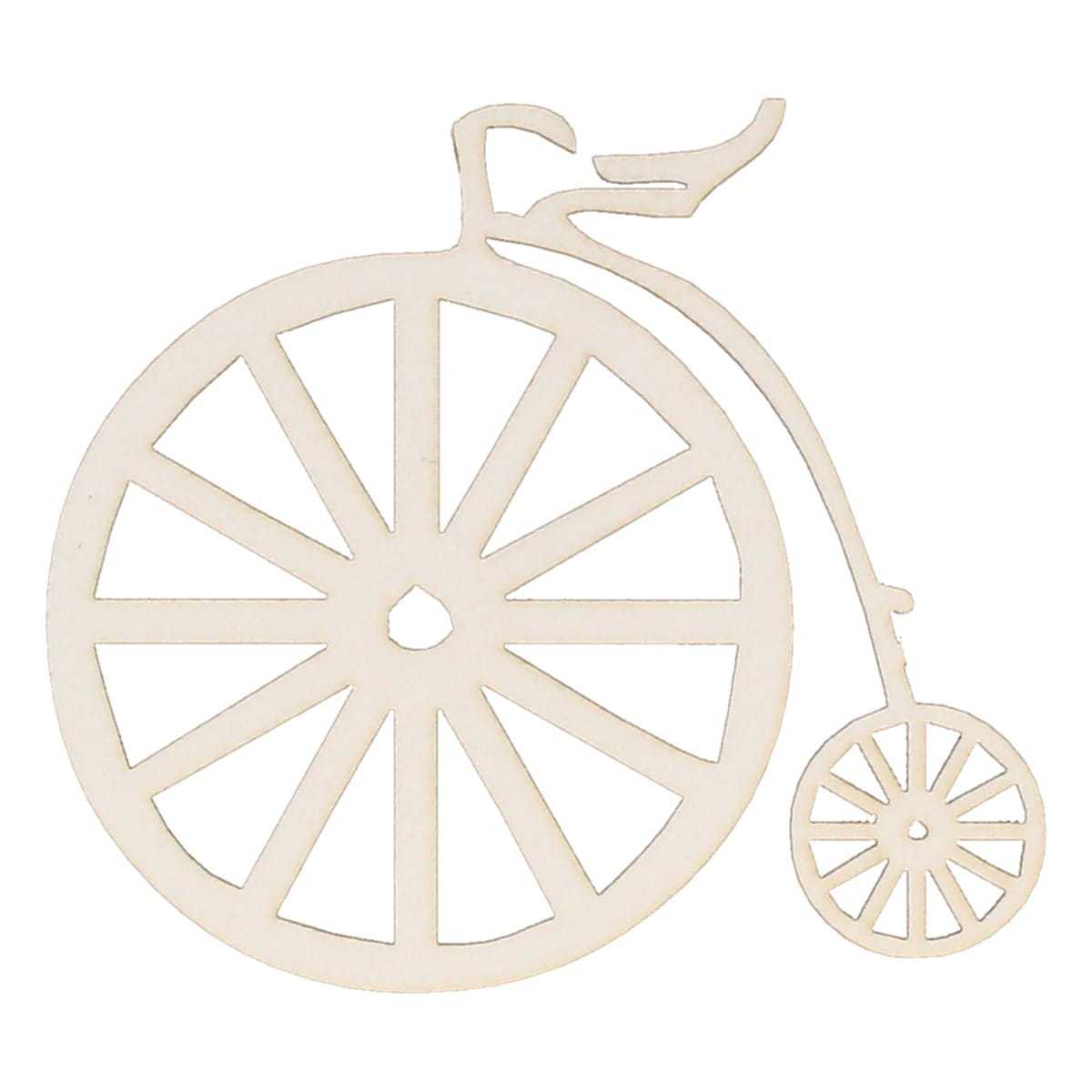 Kartonowy rower typu bicykl z dużym przednim kołem do samodzielnego ozdobienia.