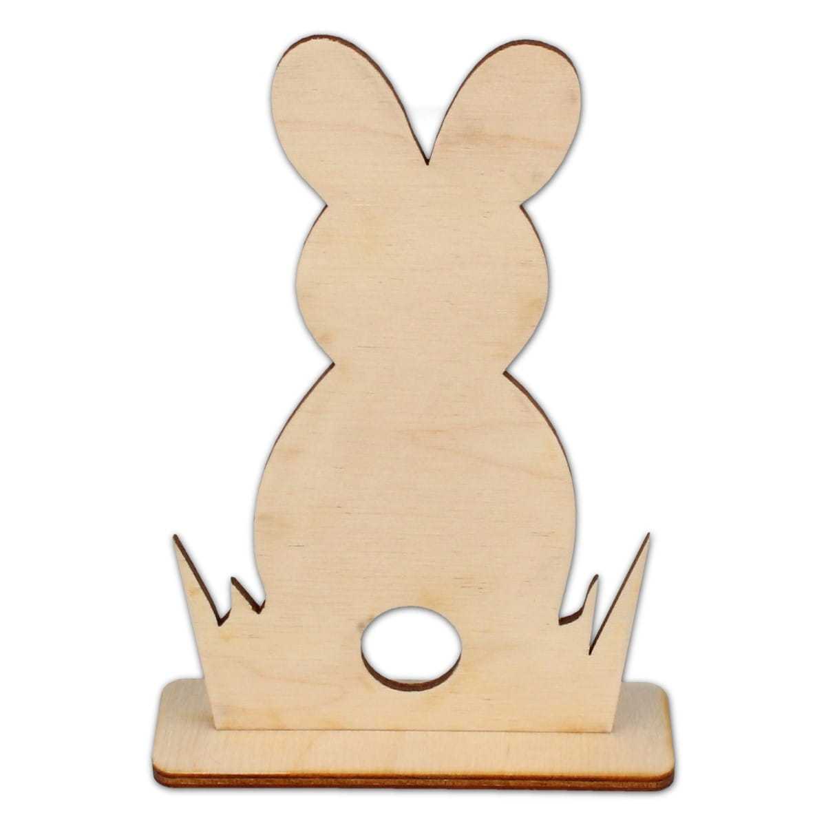 Zając ze sklejki na podstawce. Nadaje się do ozdabiania metodą decoupage. Idealny jako ozdoba wielkanocna.