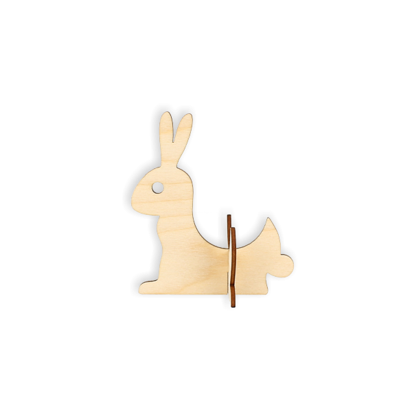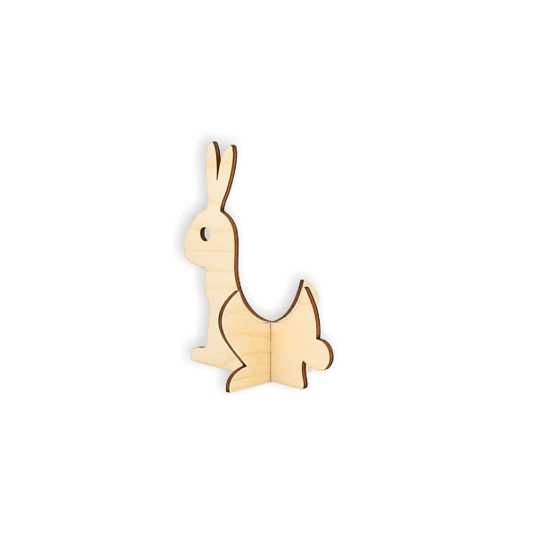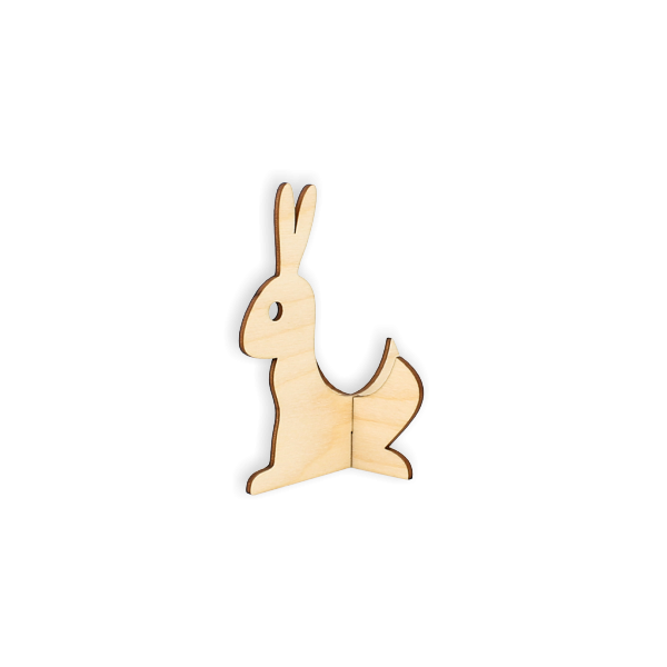 Podstawka na jajko w kształcie zająca wykonana jest z surowej sklejki o grubości 3 mm. Dekoracja nadaje się do zdobienia różnymi technikami. Drewniana podstawka, własnoręcznie ozdobiona to oryginalny pomysł na udekorowanie wielkanocnego stołu.
