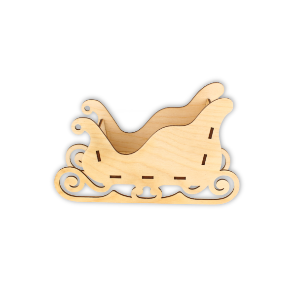 Świąteczna ozdoba wykonana jest z naturalnej sklejki o grubości 3 mm. Sanie składają się z pięciu elementów do samodzielnego montażu. Mogą posłużyć jako niewielki pojemnik np. na świąteczne słodkości lub jako podstawa bożonarodzeniowego stroika. Własnoręcznie ozdobione sanie z pewnością będą oryginalnym dodatkiem do świątecznego stołu.