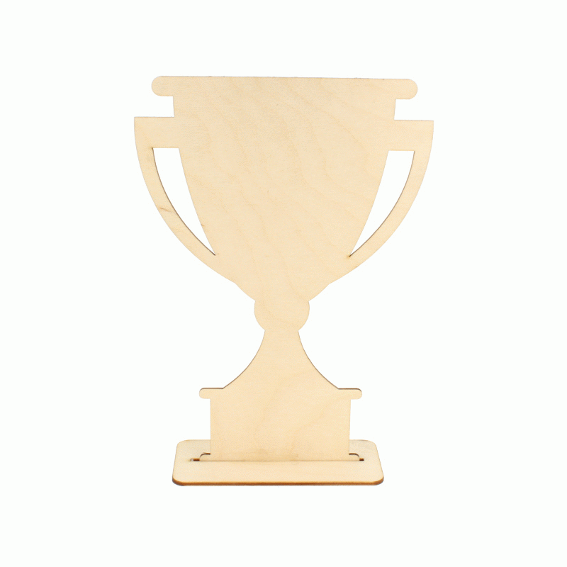 Wykonany ze sklejki puchar z podstawką może być samodzielnie wypisany lub spersonalizowany przez nas. Będzie doskonałą pamiątką dla ucznia, sportowca czy pracownika.