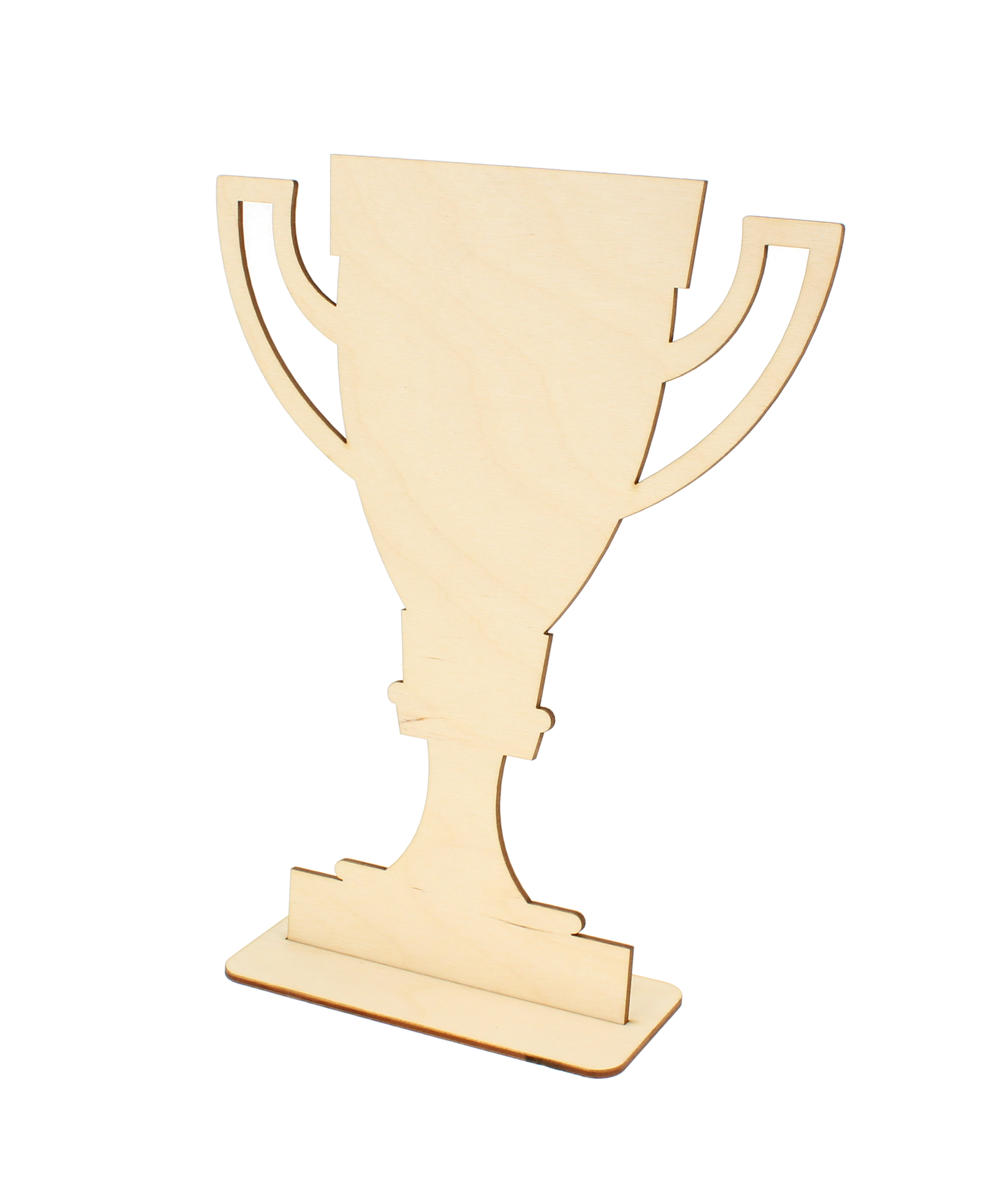Wykonany ze sklejki puchar z podstawką może być samodzielnie wypisany lub spersonalizowany przez nas. Będzie doskonałą pamiątką dla ucznia, sportowca czy pracownika.