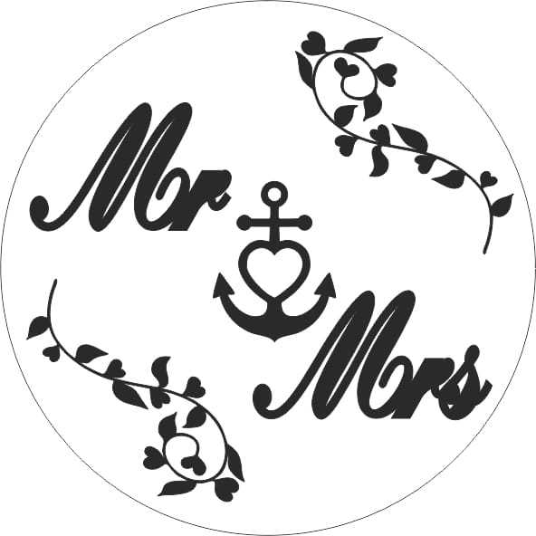 Stempel gumowy duży - ślubny z kotwicą i dekoracyjnymi gałązkami.