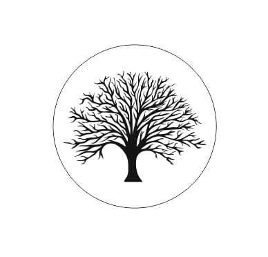 Stempel gumowy z motywem rozłożystego drzewa.