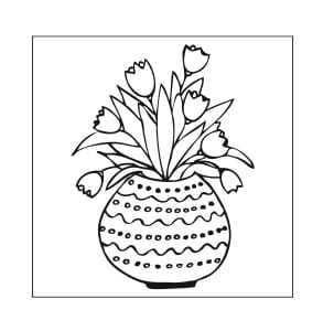 Kwadratowy, gumowy stempel z wiosennym motywem wazonu pełnego kwiatów doskonale sprawdzi się do ozdabiania kartek i albumów w stylu boho.