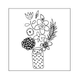 Kwadratowy, gumowy stempel z wiosennym motywem dzbanka pełnego kwiatów doskonale sprawdzi się do ozdabiania kartek i albumów w stylu boho.