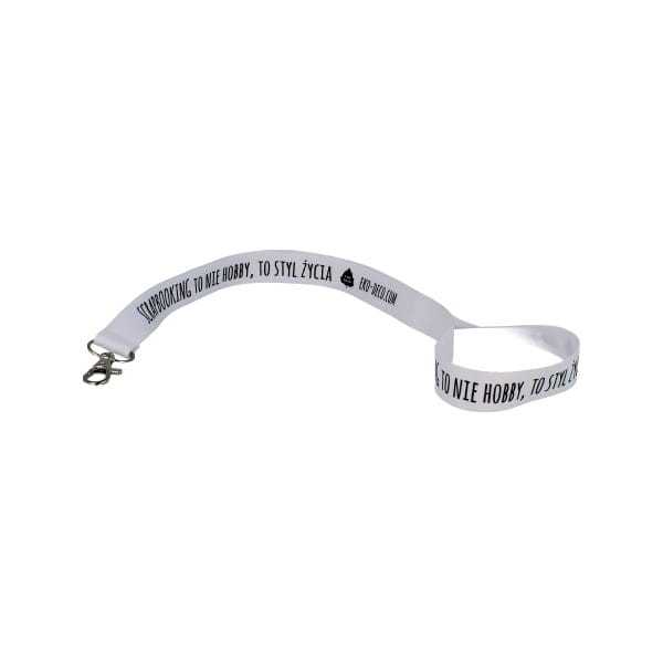 Smycz firmowa od teraz do kupienia online. Wykonana z trwałych materiałów, solidna i poręczna. Dostępna (obecnie) jedynie w białym kolorze wraz z nadrukiem Scrapbooking, to nie hobby, to styl życia oraz naszymi personaliami. :)