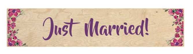 Tablica rejestracyjna ze sklejki z dekoracyjnym napisem dla nowożeńców. Doskonała ozdoba samochodu, którym państwo młodzi udają się na ceremonię.