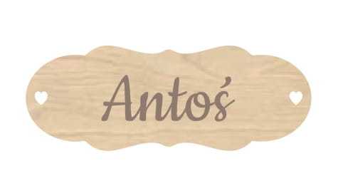 Mała tabliczka z wygrawerowanym imieniem. Otworki w kształcie serduszek mogą pełnić funkcję ozdobną, ale mogą też służyć do zawieszenia bądź przyszycia tabliczki. Możesz ją wykorzystać jako brelok, tabliczkę na drzwi lub pudełko ze skarbami, czy też na inne sposoby.