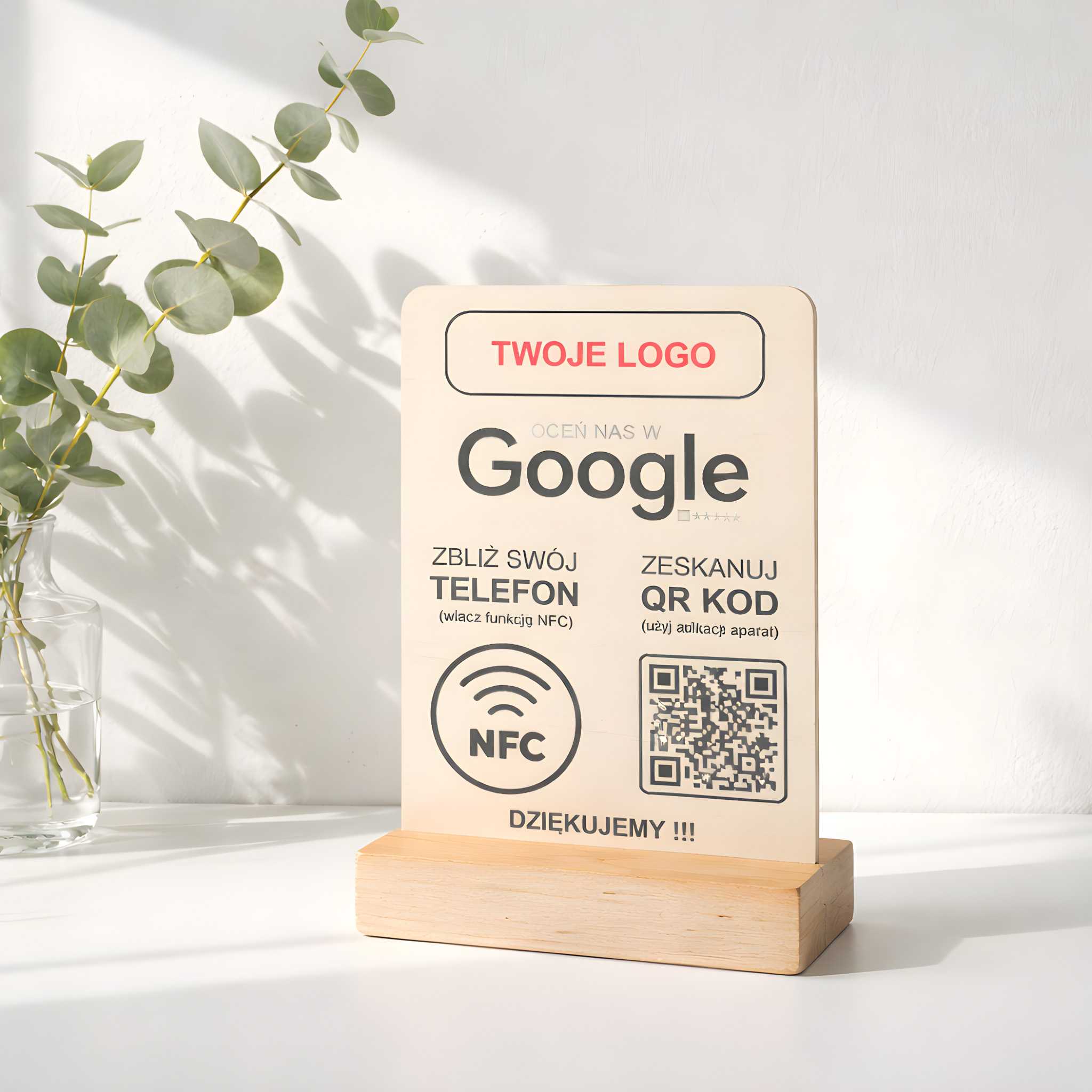 Tabliczka do opinii Google – QR KOD – NFC – Twoje logo